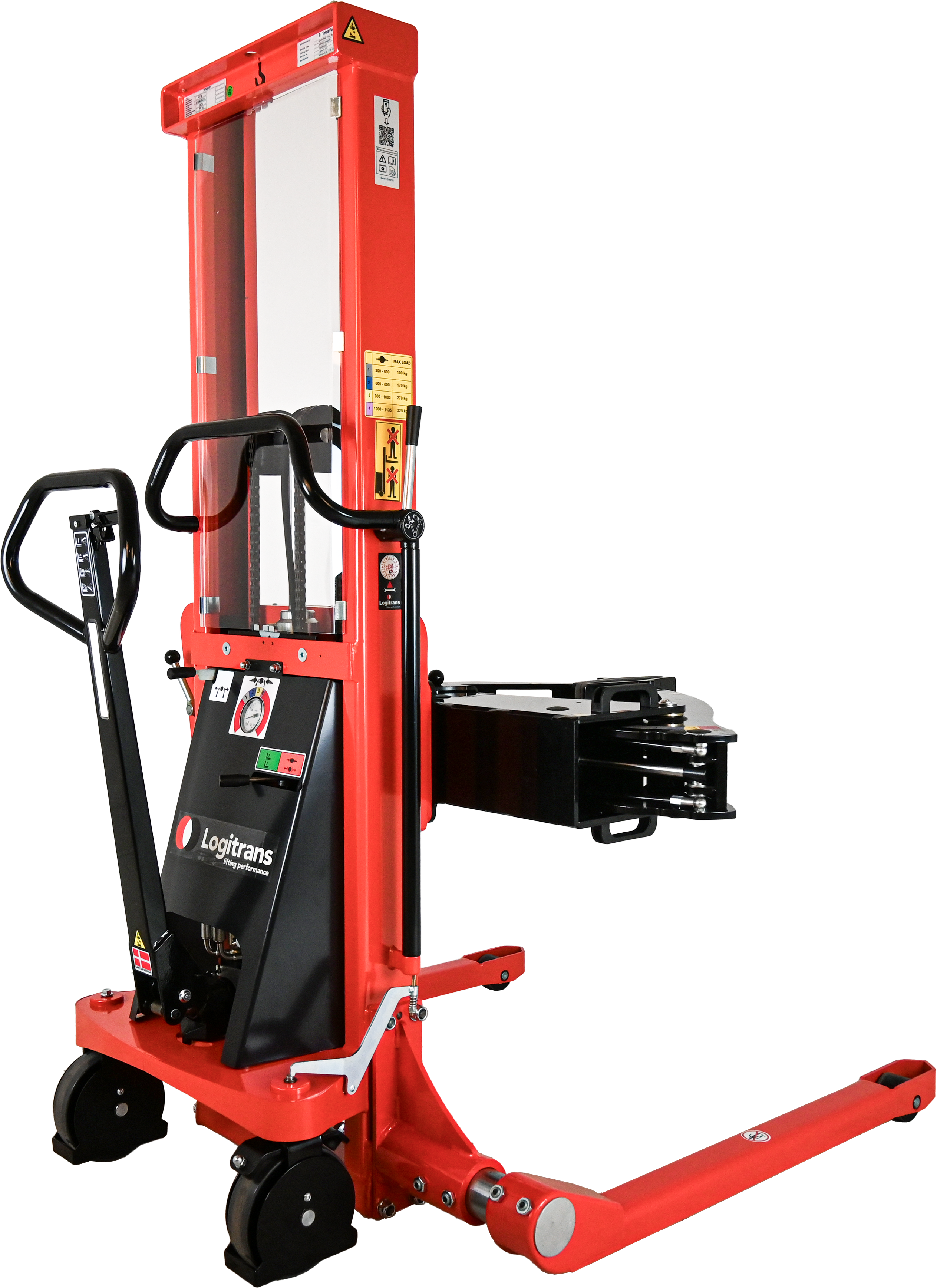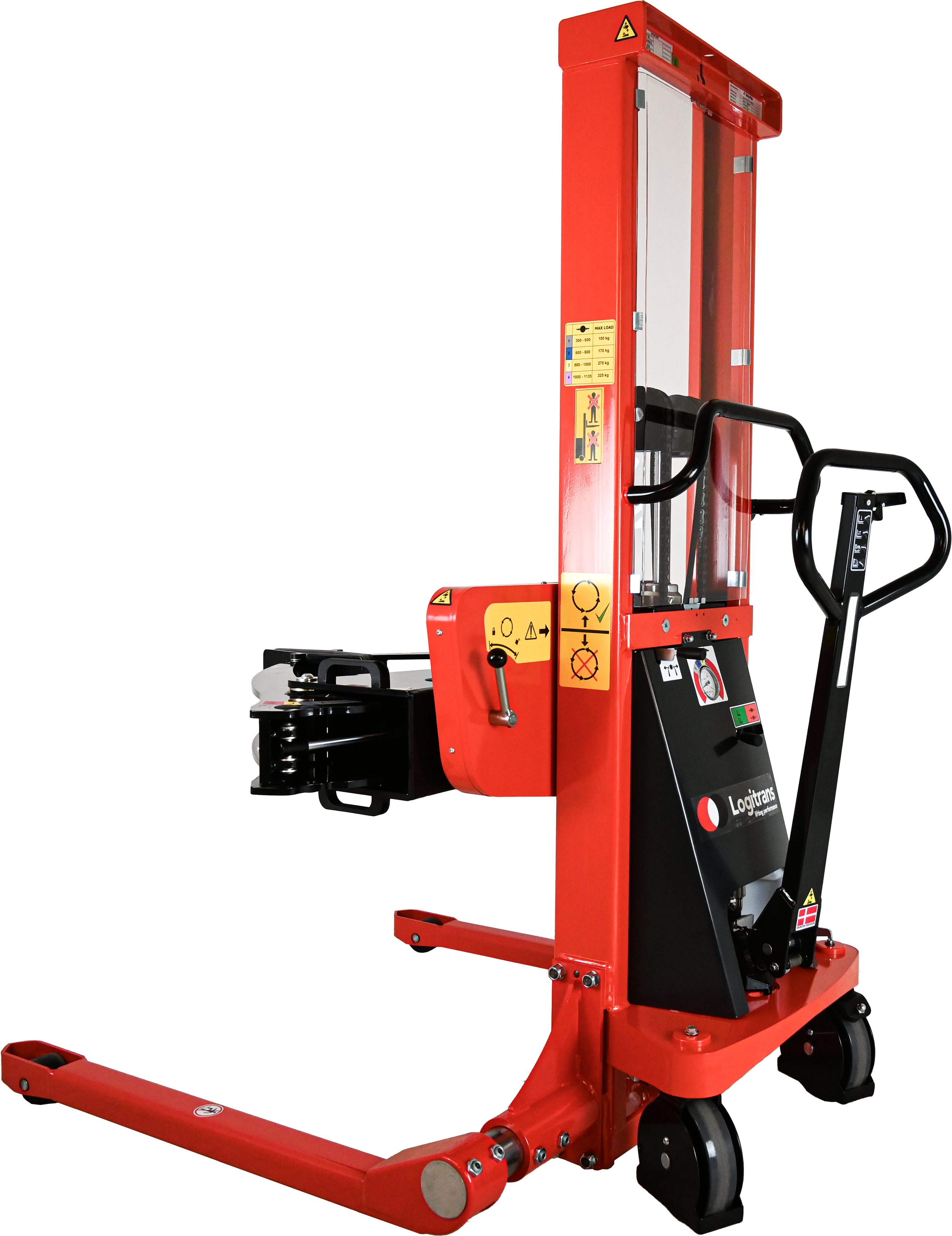 - Hantiert Rollen von Ø120 mm zu Ø1270 mm (Greifarme können 1300 mm öffnen)